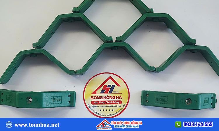 Trên thực tế lắp đặt (như hình ảnh anh gửi), kè được bố trí liên kết thành từng dãy, tạo khung kẹp chắc chắn cho toàn bộ mái.
